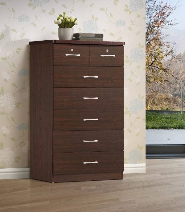 Grand 7-drawer mahogany chest with rich finish and locking top drawers.