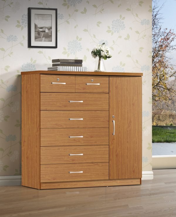 - The CROWN CHERRY COMBO CHEST is a stunning mix of storage and charm. Crafted in a rich cherry wood finish, it features seven drawers and a side cabinet for secure, stylish organization in bedrooms or offices.