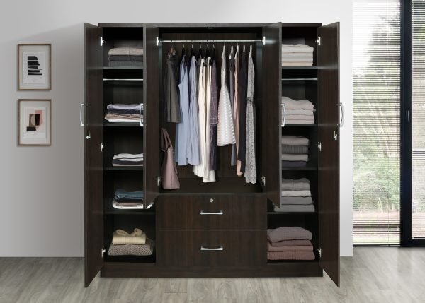 - The ESPRESSO CLASSIC MODERN WARDROBE is a contemporary storage solution, designed with a deep espresso finish that complements any modern bedroom. It features generous internal shelving and hanging space, perfect for keeping your clothing organized. Constructed with durability and elegance in mind, this piece adds both style and function to your space.