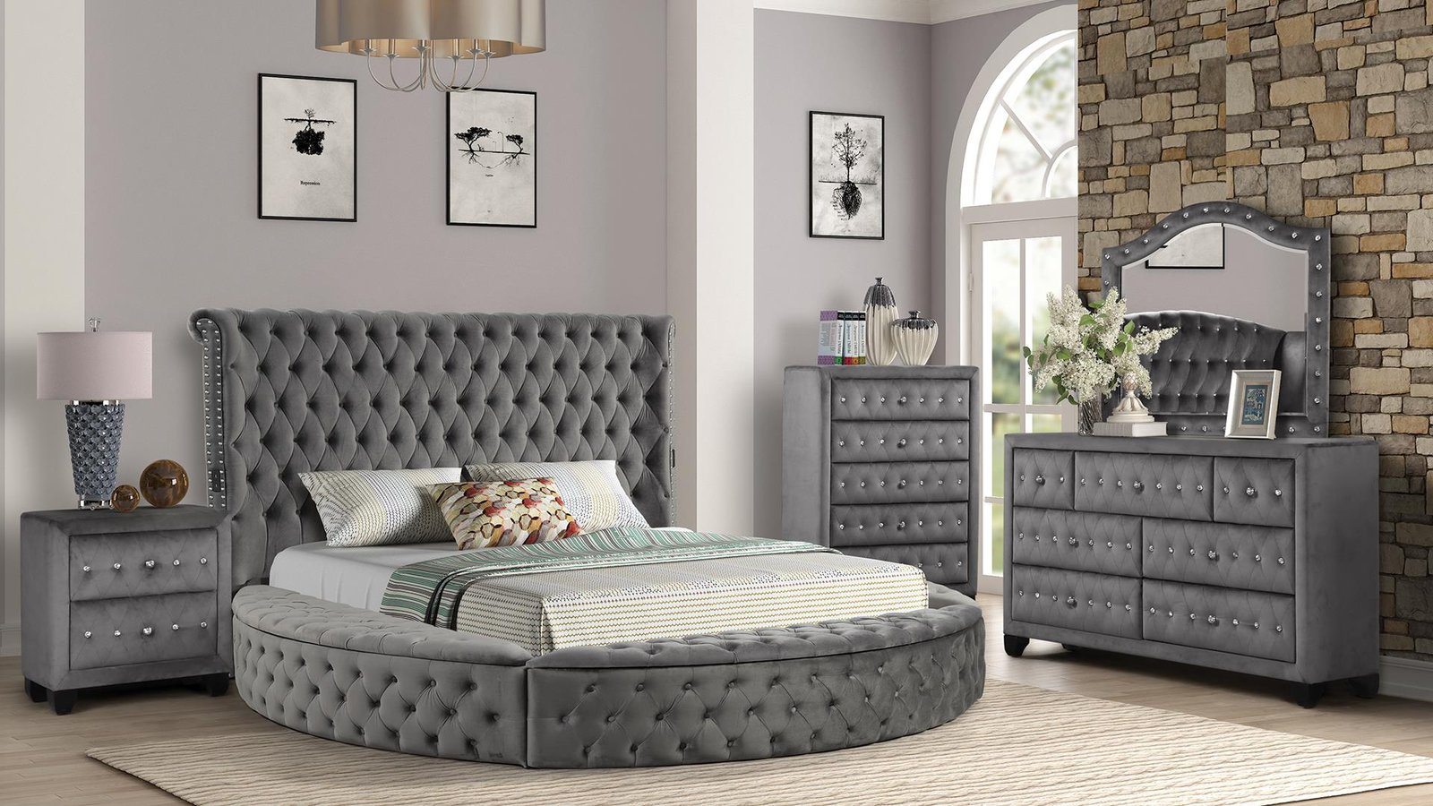 | Select Set | HAZEL KING 5 PC BEDROOM SET IN GRAY, HAZEL QUEEN 5 PC BEDROOM SET IN GRAY, HAZEL KING 4 PC BEDROOM SET IN GRAY, HAZEL QUEEN 4 PC BEDROOM SET IN GRAY, HAZEL KING BED GRAY, HAZEL QUEEN BED GRAY, SOPHIA DRESSER GRAY, SOPHIA CHEST GRAY, SOPHIA NIGHTSTAND GRAY, SOPHIA MIRROR GRAY |