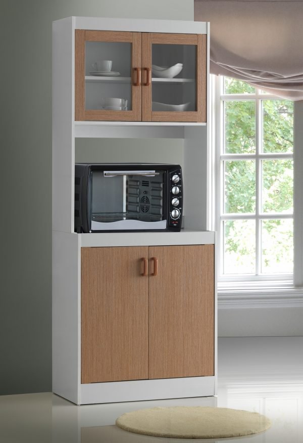 - The LIGHTWOOD GLASS DOOR MICROWAVE CABINET is crafted to brighten up your kitchen space with its modern and airy design. Featuring upper display shelves behind glass doors, a central microwave shelf, and spacious lower cabinets, this cabinet combines function with a light, contemporary wood finish. Ideal for organized, stylish storage.