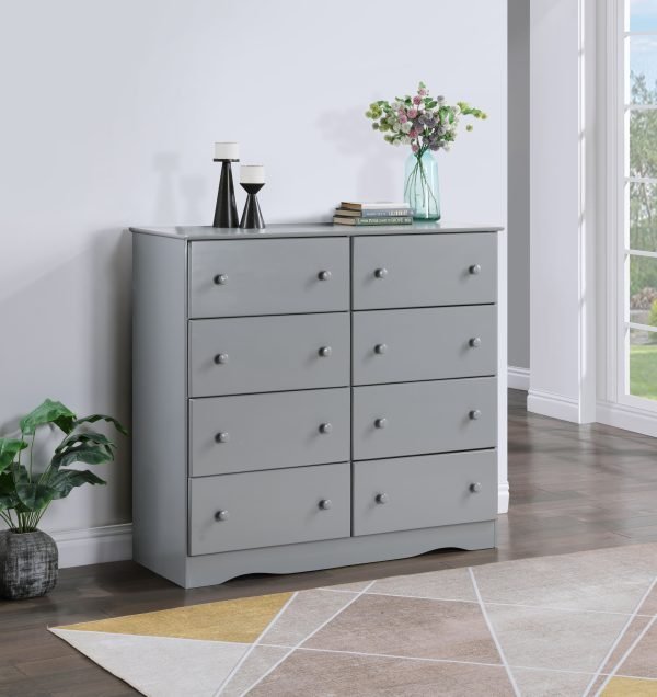 - Upgrade your bedroom storage with this 8-drawer dresser in a chic storm grey finish. Its versatile tone and minimalist style blend effortlessly into modern interiors while offering spacious storage and smooth drawer functionality for everyday convenience.