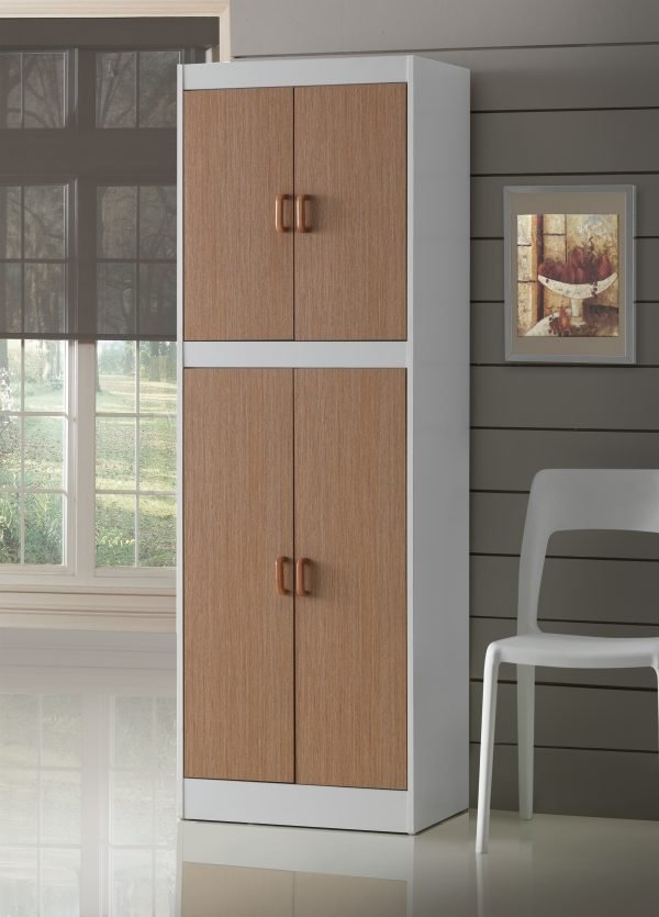 - The VERTICAL STORAGE LIGHTWOOD KITCHEN PANTRY is a sleek, tall cabinet designed for kitchens needing extra storage without taking up much space. Featuring two large storage sections behind light wood doors, the pantry is framed in bright white for a clean, minimalist look. Its versatile design fits well in contemporary homes, offering storage for dry goods, appliances, or cookware.